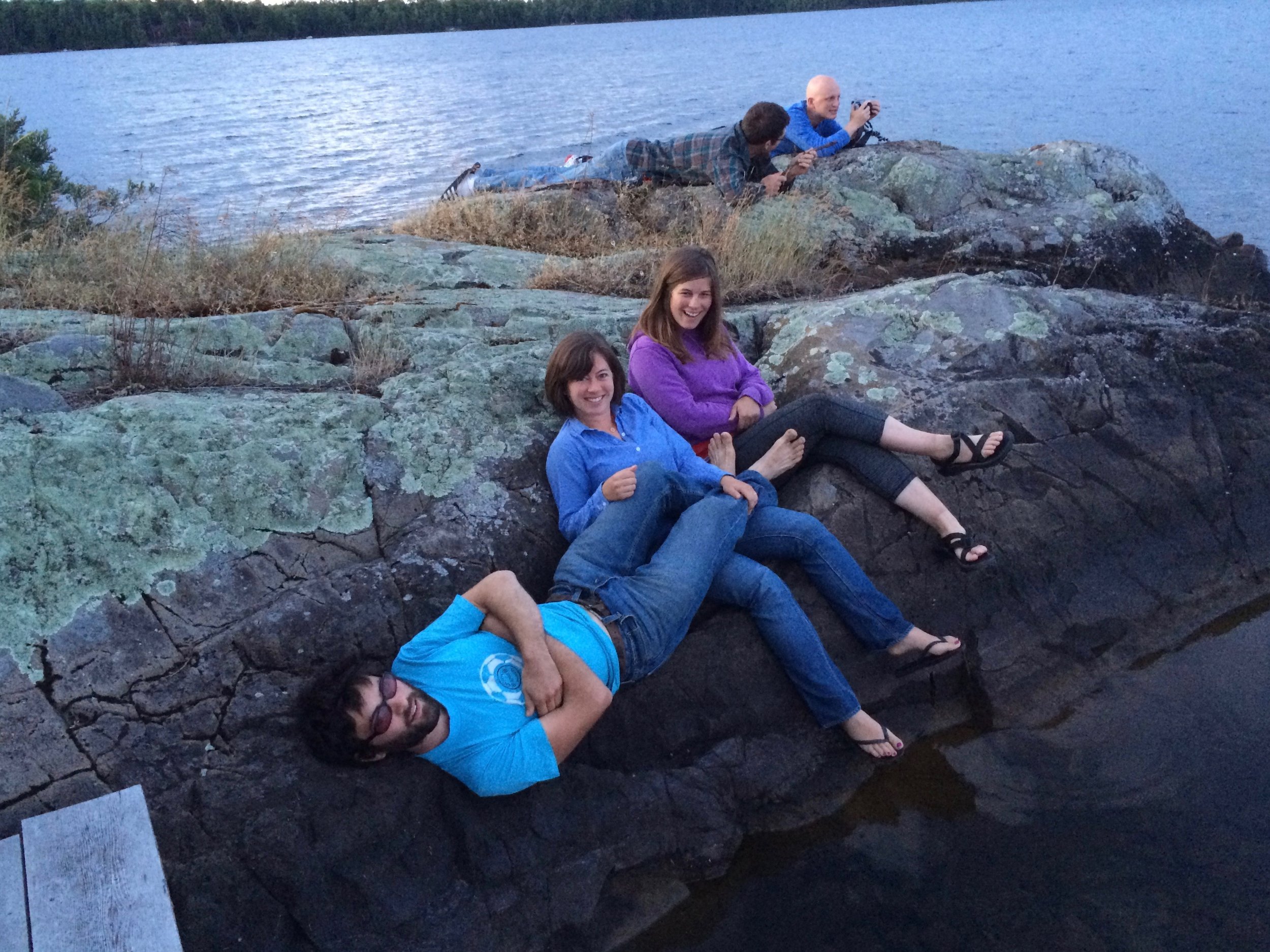 Our 12-acre property, with its 2500 feet of waterfront, can keep you busy for the week. Enjoy cooking over an open fire by the fire ring, or lounge around on the lakeside deck, or sunbathe on the lichen-covered rocky point. How many different types of lichen can you discover on the rocky point?